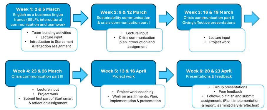 The course is highly compact and takes place throughout March and April, with six weeks of contact time on Mondays and Thursdays, 14:00-16:00 (Bergen/Vienna) / 15:00-17:00 (Sofia).