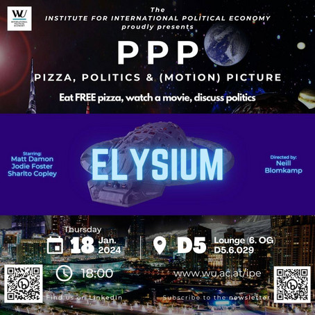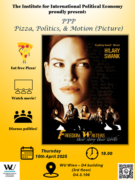 Pizza, Politics, and (Motion) Picture - the Institute for International Political Economy is starting a new event series in the winter semester of 2022/23. We want to break through the strictly academic setting of a lecture and discuss with you - interested students and friends of our institute. After the screening of a movie, there will be a discussion round to jointly discuss relevant contents of the movie from the perspective of political economy.
