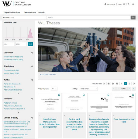 • Theses submitted digitally (since March 2025) can be accessed via the library catalog or the Digital Collections platform. You can access/download the full texts within the WU network.