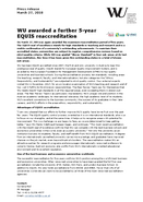 The successful reaccreditation for five years confirms WU’s position among the world’s best business and economics universities. Other renowned universities to have been granted the full five-year accreditation include the University of St. Gallen, HEC Paris, and London Business School. In addition to EQUIS, WU also holds accreditations from AACSB and AMBA. Fewer than 1% of all universities worldwide can claim to be accredited by all three of the most renowned accreditation agencies.