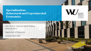 The areas of specialization offered in the Master's in Economics program cover a broad range of topics and analytical approaches in economics. The courses are closely related to the research conducted at the WU Department of Economics.
