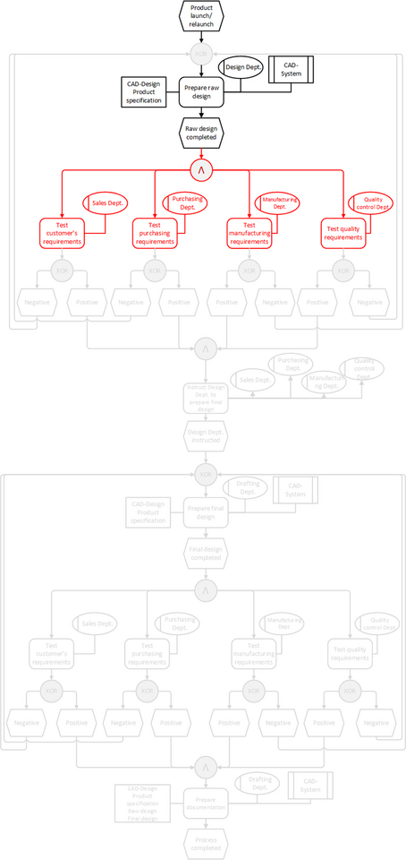 b) Once the raw design is completed, the following departments test if the product meets their requirements: the sales, the purchasing, the manufacturing and the quality control department.
