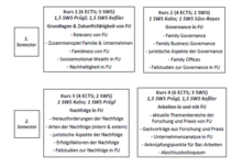 Besondere Schwerpunkte liegen auf den spezifischen „Spielregeln“, die für den nachhaltigen Erfolg dieser Unternehmensform entscheidend sind sowie auf der Bewältigung der Nachfolge als zentraler wirtschaftlicher Herausforderung. Dabei profitieren Studierende von einem engen Austausch mit der familienunternehmerischen Praxis und der Einbindung aktueller Forschungsergebnisse. Das interdisziplinäre Lernkonzept vermittelt fundiertes Wissen über die zentrale Rolle von Familienunternehmen und eröffnet vielfältige Karrierechancen in diesem Bereich.