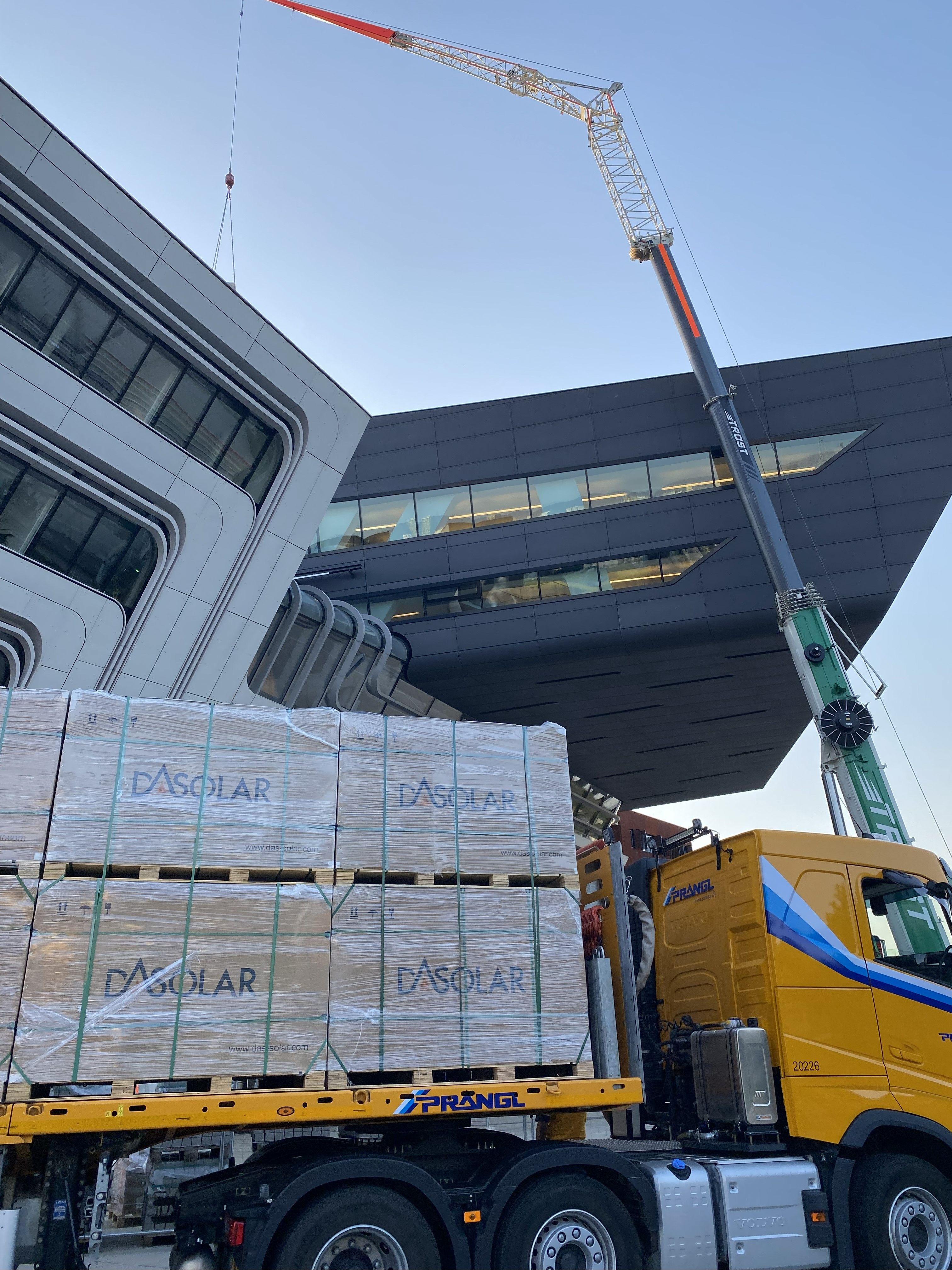 Anlieferung der PV Anlage am Campus ©WU Wien