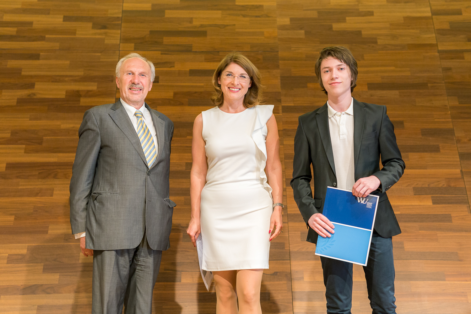 Gestern Abend, am 1. Juni 2017, prämierten Wirtschaftsuniversität und Oesterreichische Nationalbank (OeNB) erstmals Schülerinnen und Schüler mit dem WU Research Talent Award. Gleich 10 Mal übergaben die WU-Professorin und Initiatorin Bettina Fuhrmann, OeNB-Gouverneur Ewald Nowotny und Stefan Pichler, Vizerektor für Forschung an der WU, die begehrte Auszeichnung für herausragende Vorwissenschaftliche Arbeiten (VWA) an Allgemeinbildenden und Berufsbildenden höheren Schulen aus dem Themenfeld der Geld- und Finanzwirtschaft.