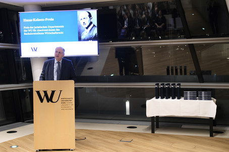 Die beiden juristischen Departments der WU Wirtschaftsuniversität Wien - Öffentliches Recht und Steuerrecht sowie Privatrecht - haben im Jänner erstmals den neu geschaffenen Hans-Kelsen‑Preis verliehen. Mit diesem werden die zehn besten Absolvent*innen des Bachelorstudiums Wirtschaftsrecht des vergangenen Studienjahres ausgezeichnet. Ziel ist es, diese herausragenden Studienleistungen sichtbar zu machen und die Studierenden im anschließenden Masterstudium zu fördern.